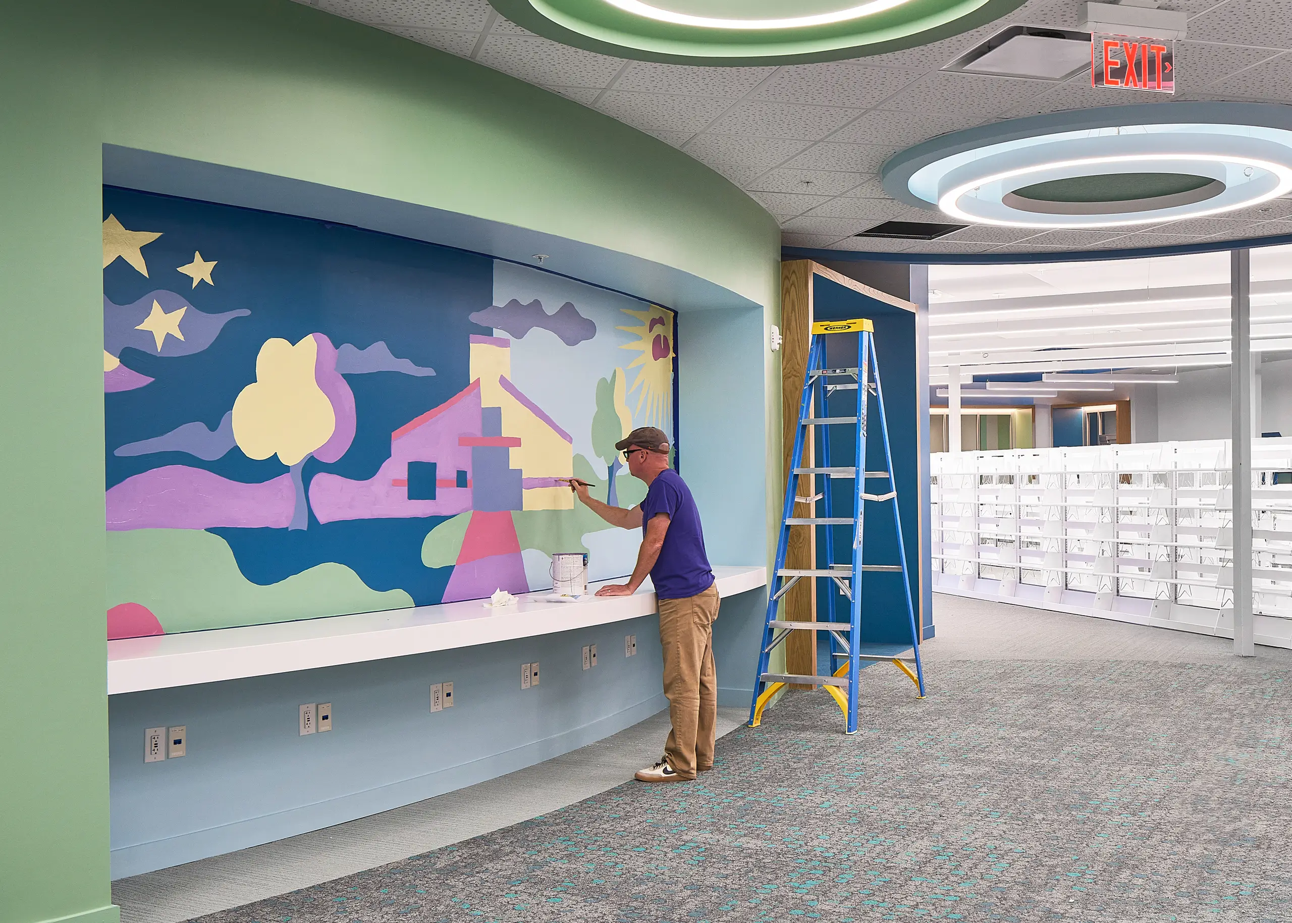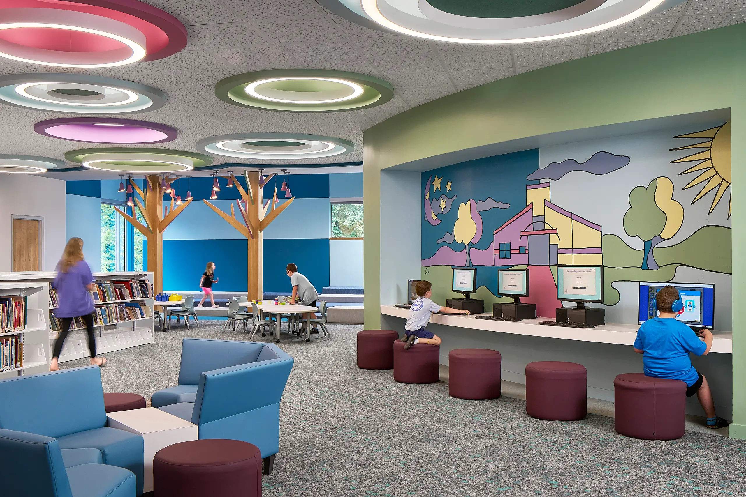 The Hickory Flat Library renovation and expansion creates a vibrant, Postmodern-inspired community hub, blending bold design, flexible spaces, and playful references to architectural history. From the child-centered areas and Maker Space to adaptable “third place” zones and custom-designed furniture, every element encourages exploration, creativity, and connection. Towers, portals, and carefully considered circulation guide visitors intuitively, making the library both an engaging destination and a cohesive architectural experience.